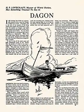 Lovecraft, Howard P. [1923] (1986). "Dagon". In S. T. Joshi (ed.). Dagon and Other Macabre Tales (9th corrected printing ed.). Sauk City, WI: Arkham House. ISBN 0-87054-039-4.