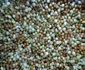 Плод — мелкая голая или пленчатая зерновка округлой формы, от белой до темно-красной окраски.