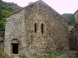 Старинная церковь монастыря расположена в его северо-восточной части. Представляет собой прямоугольную в плане однонефную базилику. Имеет два входа: с запада и юго-востока, наличники входов покрыты орнаментами. Ныне отсутствующий свод церкви опирался на три пары пилястров.[15].