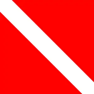 «Водолазный флаг» (англ. Diver Down) — красное полотнище с белой диагональной полосой из левого верхнего угла в правый нижний. Национальный водолазный флаг, обозначающий: «У меня спущен водолаз; держитесь в стороне от меня и следуйте малым ходом». Местные законы устанавливают, на каком расстоянии от обеспечивающего судна должны проходить суда, и на какое расстояние от флага могут удаляться водолазы. Если таких законов нет, предписывается держаться от флага на расстоянии 15 метров, а судам — на расстоянии не менее 30-60 метров. Пример: Divers-Down Flag Law. Florida. 327.331 Divers; definitions; divers-down flag required; obstruction to navigation of certain waters; penalty: