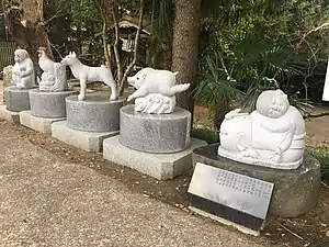 Алтарь обычно закрыт, и его двери открываются только раз в 12 лет[4]. Двенадцать скульптур китайского зодиака расположены перед храмом и каждый посетитель храма может поклониться своему знаку.