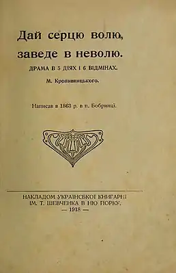 Дай сердцу волю, заведёт в неволю (укр. Дай серцю волю, заведе в неволю) — первая пьеса-драма в 5 актах украинского писателя, театрального режиссёра и актёра Марка Кропивницкого, созданная в 1863 году, является переработкой его первой пьесы «Никита Старостенко или Не заметишь, как горе нагрянет". Произведение, посвящена теме сложных отношений в пореформенной деревне, которая существенно определила его творческий путь и, пройдя долгий и сложный путь драматургического и сценического усовершенствования, подготовила прочный грунт для развития психологической драмы в украинской литературе.