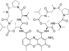 | ИЮПАК | 2-amino-N,N'- bis[(6S,9R,10S,13R,18aS)- 6,13-diisopropyl- 2,5,9-trimethyl- 1,4,7,11,14-pentaoxohexadecahydro- 1H-pyrrolo[2,1-i] [1,4,7,10,13] oxatetraazacyclohexadecin- 10-yl]- 4,6-dimethyl- 3-oxo- 3H-phenoxazine- 1,9-dicarboxamide |