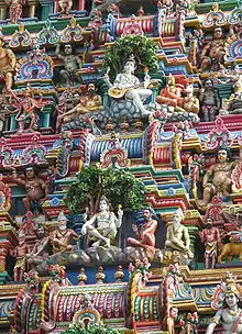 ![]() Скульптура Шивы-Дакшинамурти с виной над южным входом в Храме Минакши в Мадурае | |