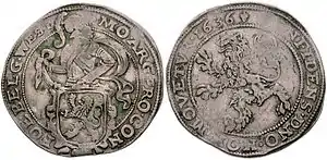 - лёвендальдер (львиный талер), получивший своё название по изображённому на монете льву;
