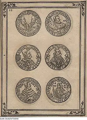 - Schrötter, 1970, Gehelmter Rijksdaalder, Prinzendaalder, S. 214.