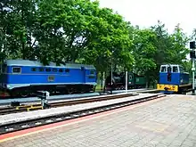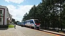 - Подвижной состав состоит из двух локомотивов ТУ-7А (№ 3361) и локомотива ТУ-10 (№ 017), трёх пассажирских вагонов ВП750. В 2009 году поступили тепловоз ТУ7А № 3361 и три пассажирских вагона ВП750. В декабре 2012 года прибыл тепловоз ТУ10 № 017[3][4]. В октябре 2013 года поступили еще три вагона ВП750.