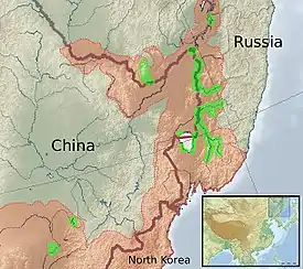 В пределах России встречается на юге Дальнего Востока — крайней северной границе ареала. Населяет бассейны рек Амур (на севере почти от устья, вверх по течению на юг до западной части Приморья несколько выше устья Сунгари), Уссури и их крупные притоки, а также озеро Ханка. Распространение вида в России в данный момент приурочено к двум основным районам — Приамурскому (бассейн озера Гасси в Хабаровском крае) и Ханкайскому (бассейн озера Ханка в Приморском крае)[11][12].