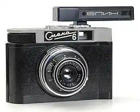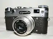| Матрос ВМФ СССР наблюдает в оптический дальномер за результатами бомбометания по подводным лодкам, 1943 | Приставной дальномер для шкальных фотоаппаратов | Дальномер фотоаппарата «Зоркий-5» |