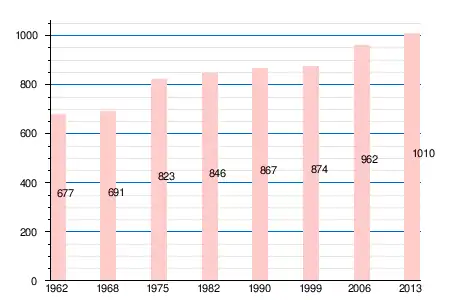 | 1962 | 1968 | 1975 | 1982 | 1990 | 1999 | 2006 | 2008 | 2011 | 2012 | 2013 |