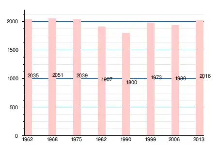 Население коммуны в 2011 году составляло 1993 человека[6], в 2012 году — 2016 человек[7], а в 2013-м — 2016 человек[5].