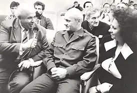 ![]() Яков Дамский (слева) берёт интервью у Владимира Джанибекова, 1993 год | |