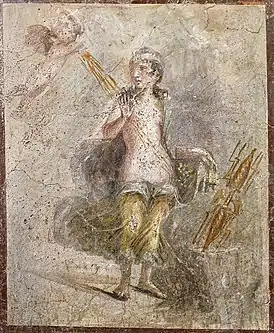| Эрот, льющий на Данаю золотой дождь. Античная фреска из Помпей | |