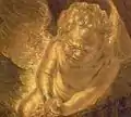 Даная. Фрагмент: над изголовьем кровати - золотой младенец с крылышками, на лице которого застыло страдание