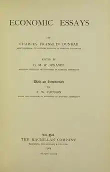 - Dunbar C.F. Economic Essays, 1904/ed. Sprague: