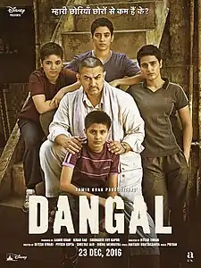 Дангал («Борьба», хинди दंगल, Dangal) — индийская спортивная драма, снятая режиссёром Нитешем Тивари с Аамиром Xаном в главной роли (который также выступил продюсером фильма) и вышедшая на экраны в декабре 2016 года. В основе сюжета — история бывшего борца Махавира Сингха Пхогата, воспитавшего Гиту Пхогат и Бабиту Кумари, ставших прославленными индийскими женщинами-борцами. Фильм стал бестселлером индийского[3][4] и китайского проката 2017[5], собрав по сообщениям прессы 2000 кроров (20 млрд) рупий по всему миру. Однако, согласно создателям фильма, сборы на начало июля 2017 года составляли только 1864 крора[6][7]. На родине фильм также завоевал несколько престижных наград, включая Filmfare Awards и Национальную кинопремию.