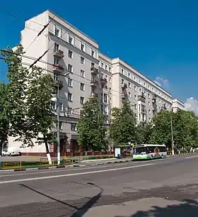 В 1950—1970-х годах застройка посёлка велась панельно-сборными домами, что нарушило целостность первоначального ансамбля, решённого в конструктивистском стиле. Жилые здания посёлка строились параллельно друг другу по принципу «строчной застройки», в соответствии с которым торцевая часть домов была обращена к главной улице, а фасады расположены друг напротив друга. Подобная система была широко распространена при застройке в стиле конструктивизма 1930-х годов. Строчная застройка имеет ряд гигиенических преимуществ по сравнению с застройкой закрытыми глухими дворами: обладает хорошей проветриваемостью и оптимальным инсоляционным режимом. Эти здания, построенные в общем стиле из качественного кирпича и оштукатуренные, отличаются друг от друга окнами, балконами, крышами и другими элементами. Дома имеют пять или семь этажей, у многих в более поздние годы снаружи были пристроены лифты. Квартиры преимущественно были трёх- или четырёхкомнатными с общей кухней и туалетом, ванные комнаты отсутствовали. Чаще всего эти квартиры были коммунальными, в которых одновременно проживали от трёх до шести семей[11].