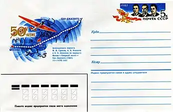 12—14 июля 1937 года в качестве штурмана на самолёте АНТ-25 (командир экипажа — М. М. Громов, второй пилот — А. Б. Юмашев) совершил беспосадочный перелёт Москва — Северный полюс — Сан-Джасинто (США) протяжённостью 10 148 км по прямой (полётное время — 62 часа 17 минут). Были установлены три мировых авиационных рекорда дальности полёта (из них один абсолютный). Весь экипаж (первыми среди отечественных авиаторов) был удостоен медалей де Лаво (награды FAI).
