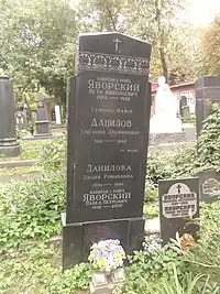 Скончался в 1946 году, похоронен на Новодевичьем кладбище Москвы.