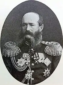 | Награды и премии | Орден Святого Владимира 4-й ст. (1854), Орден Святого Станислава 1-й ст. (1870), Орден Святой Анны 1-й ст. (1874), Орден Святого Георгия 4-й ст. (1877), Орден Святого Владимира 2-й ст. (1879), Орден Белого Орла (1880), Орден Святого Александра Невского. |