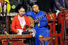 ![]() Женщина, играющая на дан бау в Ханойском кукольном театре на воде | |
