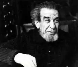 Нос картошкой, губчатый, да и все лицо как бы из вулканической пемзы. Длинные волосы, огромный рот, во рту — гигантская трубка, увесистая и постоянно чадящая ароматным трубочным табаком. Дыхание хриплое, астматическое. Движения порывистые, как бы сопротивляющиеся болезни сердца и легких. Речь рассыпчата, невнятна, как бы с природным акцентом, не с акцентом иностранца, а с оттенками пришельца откуда-нибудь с гор, пустыни, словом — из мира одиночества. <…>