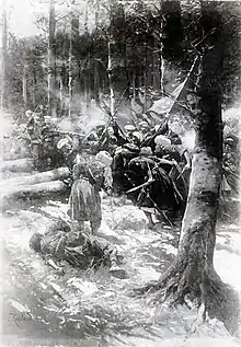 сопровождает неистовый, дикий крик неприятеля, и вся местность ненадолго окутывается густым пороховым дымом[18].