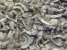 ![]() Фрагмент мозаики «Битва при Иссе». Дарий III в битве с Александром Македонским | |