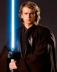 | Оружие | Синий световой меч, зелёный (некоторое время, во время Войн Клонов), после перехода на тёмную сторону — красный световой меч |