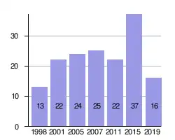 На выборах в последующие годы, популярность партии медленно росла: 13,2 % голосов и 24 места в Фолькетинг, в 2005 г., 13,9 % голосов и 25 мест в 2007 г.