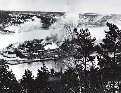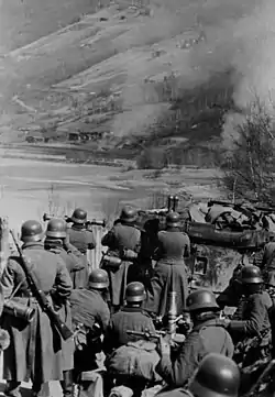 Парашютисты не смогли во «время Везер» высадиться в Осло-Форнебю из-за сильного зенитного огня, но штурмовая группа пехоты под прикрытием бомбардировщиков приземлилась и захватила аэропорт[54]. В девятом часу началась посадка транспортов; после полудня пехота под командованием полковника Польмана ворвалась в Осло, который вскоре был захвачен[54]. Небольшие немецкие силы с тревогой наблюдали за двумя норвежскими дивизиями, стоявшими у Фредрикстада и Гардермуэна[54].