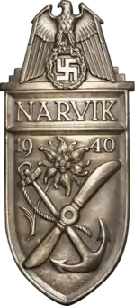 Восемь эсминцев 1-й десантной группы во главе с «Вильгельмом Хейдкампом» утром 9 апреля вошли в бухту Нарвика, где после переговоров потопили норвежские броненосцы береговой охраны «Эйдсвольд» и «Норге»[39]. Эсминцы высадили в порту горнострелков; после непродолжительной беседы начальник гарнизона Нарвика, полковник Зундло, сдал город Дитлю; однако две роты 13-го пехотного полка не подчинились приказу и отошли к шведской границе[35]. В 8:10 с эсминцев передали в штаб, что Нарвик, основная цель вторжения, захвачен[35].
