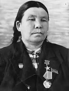 Указом Президиума Верховного Совета СССР от 29 марта 1958 года за выдающиеся успехи, достигнутые в деле развития овцеводства, увеличения производства и сдачи государству мяса, шерсти и шкурок каракуля в 1957 году, и широкое применение в практике своей работы достижений науки и передового опыта удостоена звания Героя Социалистического Труда с вручением ордена Ленина и золотой медали «Серп и Молот»[1].