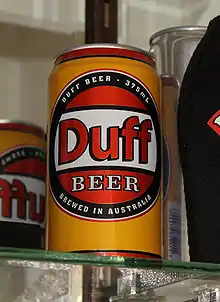 Пиво под маркой «Дафф» производилось в Южной Австралии с середины 1990 года до 1996, когда выяснилось, что название без разрешения заимствовано из «Симпсонов». Цена этого пива доходит сейчас до 10 000 $ за коробку, тогда как у производителя коробка стоила 24 долл.[3]