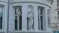 Одноэтажное здание имеет асимметричный фасад. Оно отделено от остальной набережной небольшим зелёным цветником и является чёткой архитектурной доминантой. Главный фасад построен в классическом стиле. Центральный вход украшен спрятанными за белыми балясинами балюстрадами двускатным лестничным маршем[2]. Он усилен башней в английском стиле, что образует полукруглую ротонду с зубчатой крышей. Главной архитектурной особенностью дачи являются статуи граций, чьи попытки скрыть обнажённость мастерски запечатлены в камне. Арочные ниши статуй долгое время оставались пустыми, и нынешние скульптуры являются лишь репликами[2].