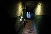 Во время Великой Отечественной войны местность усиленно бомбила немецкая авиация из-за близости к крупнейшему городскому элеватору. Во время одной из бомбежек в 1941 году фугасная бомба попала в пруд рядом с домом, и одна из стен дома частично пострадала — отошёл один угол. Щель забили одеялами. Учителя продолжали в нём жить до 1965 года.