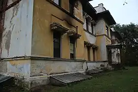 Основным декором фасада стали окна, которые можно разделить на два типа, огромные квадратные окна и прямоугольные узкие окна с ярко выраженными выступами. Если первый тип является характерной чертой архитектуры модерна, то выступы над окнами скорее всего могут быть объяснены использованием мотива большого навеса над входной дверью в зданиях той же эпохи.