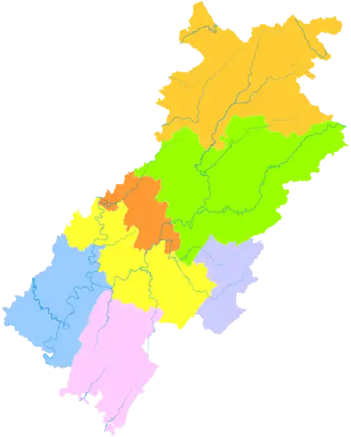 | 1 | Район | Тунчуань | 通川区 | Tōngchuān qū | 390 000 | 451 | 865 |