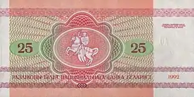 25-рублёвая банкнота в Белоруссии была введена в обращение 25 мая 1992 года. Выведена из обращения 1 января 2001 года[1].