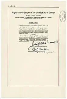 Двадцать четвёртая поправка к Конституции США запрещает ограничения избирательных прав по основаниям неуплаты налога. Принята Конгрессом 23 января 1964 года.
