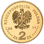 | Описание | Герб Польши, надпись RZECZPOSPOLITA POLSKA (польск. Республика Польша) |