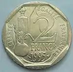 Монета с реверсом, на котором изображена Сеятельница (фр. 2 francs Semeuse). Рисунок монеты, который придумал в 1897 году Оскар Роти, был использован на французских монетах более 100 лет.
