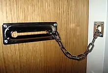 Дверна́я цепо́чка — предохранительное устройство, ограничивающее открывание входной двери в доме или квартире. Комплект дверной цепочки состоит из собственно стальной цепочки с монтажной планкой и запорным крючком и запорной коробки с заводным отверстием.