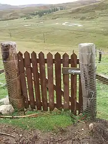 - Калитка — дверь в заборе предназначенная для входа в огороженную забором территорию и выхода. Если дверь, как правило, не позволяет увидеть, что находится или происходит за дверью, то калитка наоборот, даёт обзор территории за ней.