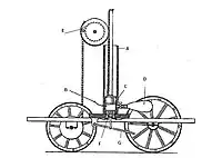 Двигатель приводился в действие газовой смесью водорода и кислорода, которая, воспламенялись, вызывала взрыв внутри цилиндра и выталкивала поршень. Газовая смесь воспламенялась от электрической искры так же, как в современном двигателе внутреннего сгорания. В 1806 году он применил эту конструкцию к тому, что можно назвать первым в мире автомобилем с двигателем внутреннего сгорания.[4][5]