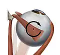 - Эксциклодукция — противоположно инциклодукции. Верхняя окружность отводится к виску — нижняя косая мышца