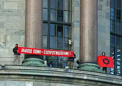 - акция на колоннаде Исаакиевского собора в знак протеста против отмены прямых выборов губернаторов (28 октября 2004 года);