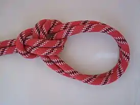 - Если нагружают лишь один коренной конец из двух (в скалолазании), используя сразу обе петли, — необходим контрольный узел