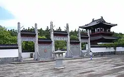 За воротами находится двор, на котором выложен символ Великого Предела (Тайцзи), с двух сторон двор замыкают Колокольная башня и Барабанная Башня.