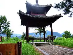 За павильоном идёт тропинка через рощу, и на холме находится беседка, где медитировал Чжан Даолин. Прогулочная тропа спускается дальше вниз через лестницу из 99 ступеней и возвращается к Воротам Счастливой Земли.